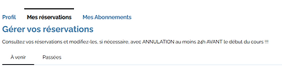 Une fois connecté, cherchez la section dédiée à vos réservations et intitulée « Mes réservations » (voir la flèche jaune ci-dessous). Vous pourrez y consulter vos réservations existantes et les modifier selon vos besoins ou en effectuer de nouvelles .